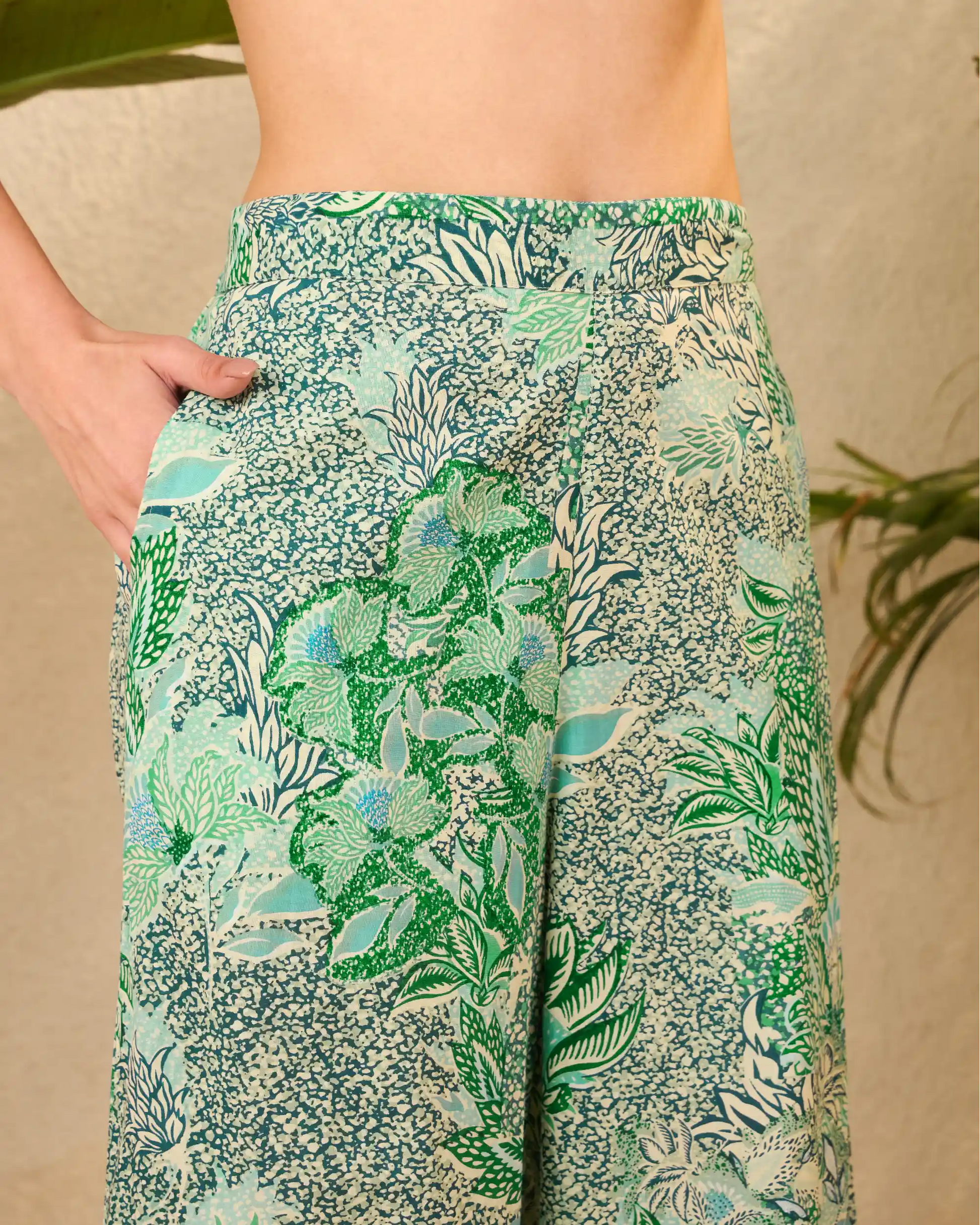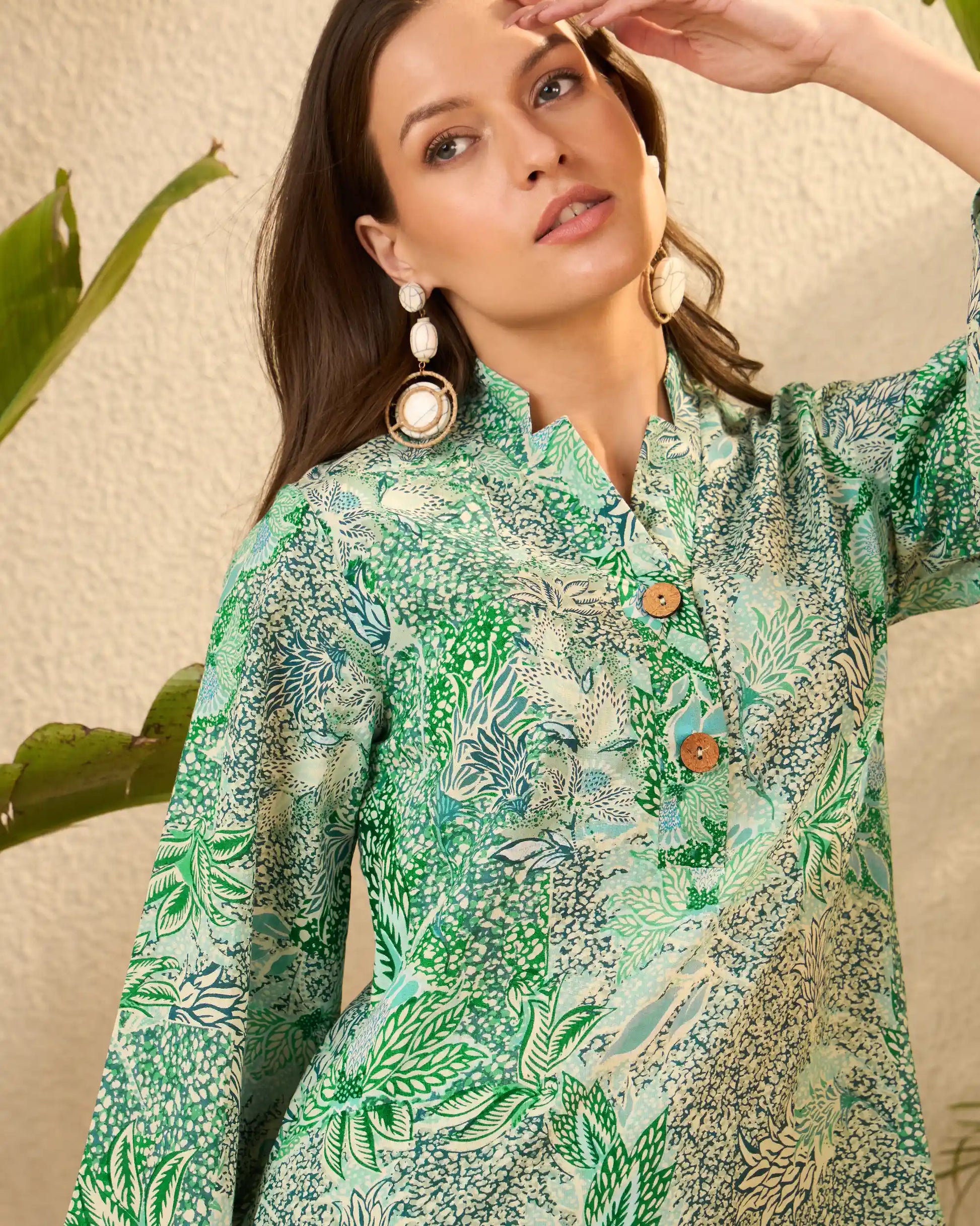 IMANA Green Floral Pure Cotton Mandarin Collar Co-Ord Set